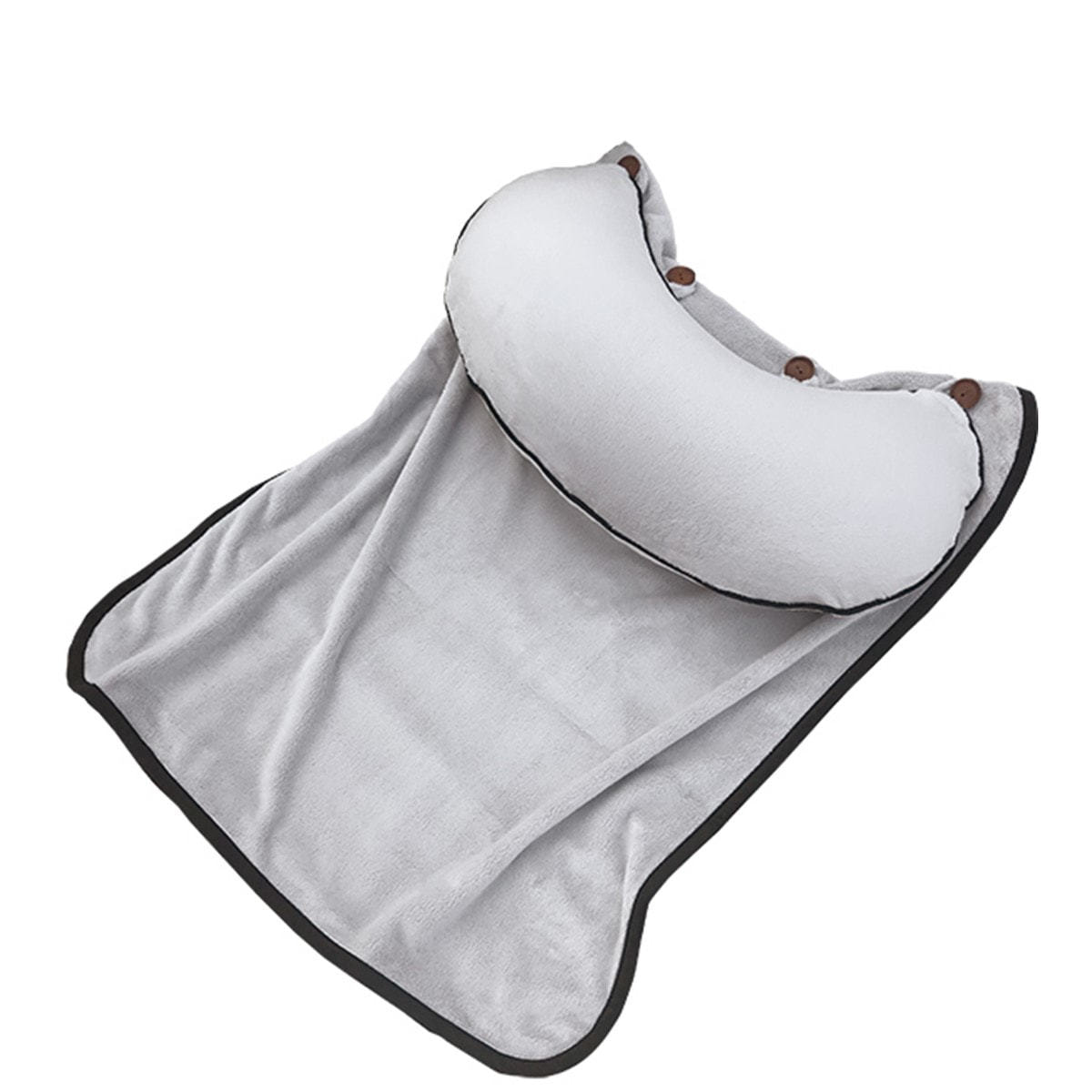 セットのひざ掛けは、クッションにボタンで付け外しが可能。